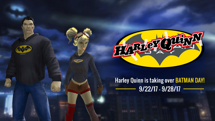 Log in to the madness this week to claim free gifts from Harley and get the celebrations underway. All players can claim the 2017 Batman Day Box (in the Redeem/Claim section of the Marketplace) IF you log in between September 22 and September 28, 2017. The box can only be claimed once per account.