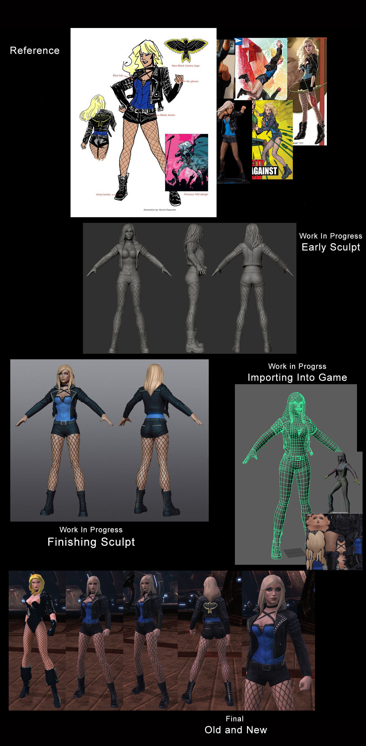 Glitter: There are many, many steps to getting a character in game, but to simplify I will use Black Canary.