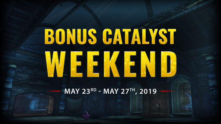 This weekend – from Thursday, May 23, 2019, through Monday, May 27, 2019 – Catalysts will have a chance to drop in instanced (On Duty) content in Episodes 31-34 (Deluge, Teen Titans: Judas Contract, Atlantis, and Justice League Dark). Catalysts are used for Artifact Breakthrough Ranks.