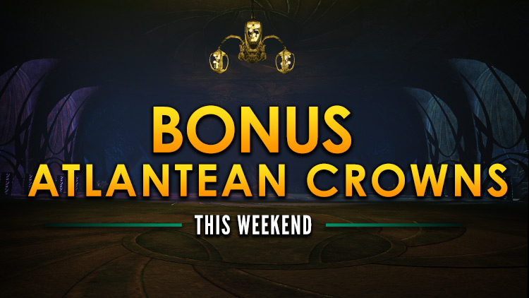 This weekend – from Thursday, April 26, 2018, through Sunday, April 29, 2018 – all players will receive bonus Atlantean Crowns in Deluge. Atlantean Crowns are used to acquire vendor gear and other item rewards in the Deluge event and episode.