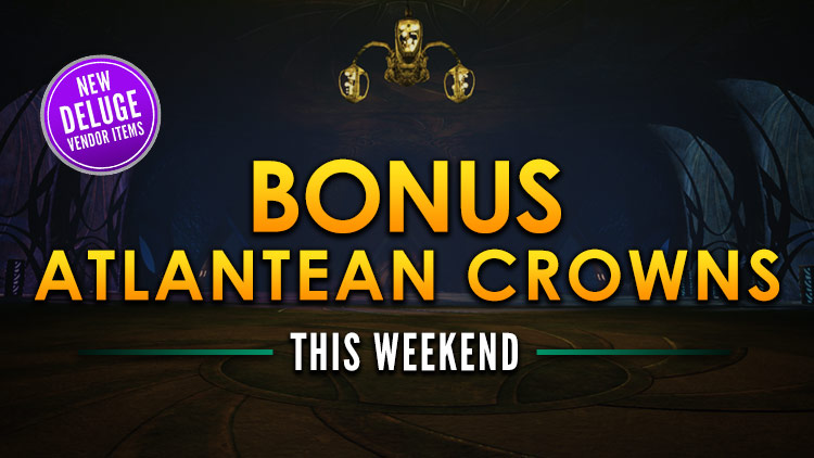 This weekend – from Thursday, June 14, 2018, through Sunday, June 17, 2018 – all players will receive bonus Atlantean Crowns in Deluge content. Atlantean Crowns are primarily used for vendor rewards and gear in Episode 31: Deluge.