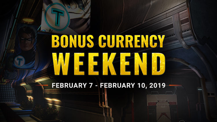 This weekend – from Thursday, February 7, 2019, through Sunday, Februray 10, 2019 – all players will receive DOUBLE currency rewards in our most recent episodes: Ancient Coins (Amazon Fury Part III), War Bonds (Age of Justice), Marked Bills (Riddled With Crime), Ultrabucks (Earth 3), Atlantean Crowns (Deluge), and Titans Creds (Teen Titans: Judas Contract). Play them all!