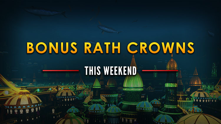 This weekend – from Thursday, December 6, 2018, through Sunday, December 9, 2018 – all players will receive bonus Rath Crowns in Atlantis. Rath Crowns are used to acquire vendor gear and other item rewards in the Atlantis event and episode.