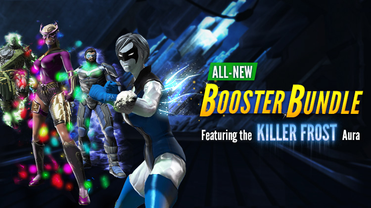 The Booster Bundle is back, and it’s packed once again with useful items to help you on your missions in Metropolis and beyond. Each bundle also gives you a chance at one of eight NEW AURAS, including Killer Frost’s Cold Shoulder Aura, which is of course inspired by the icy and infamous Killer Frost!