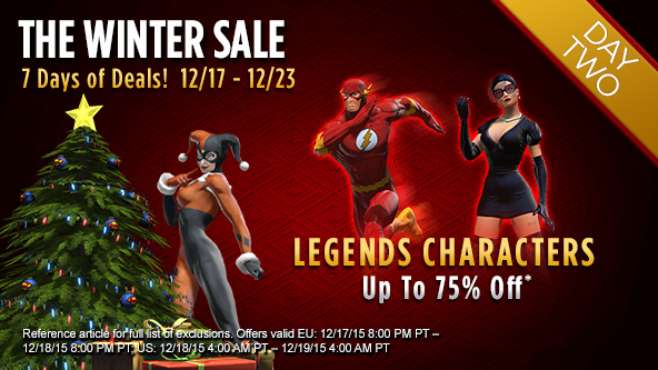 Happy Holidays! The Winter Sale is rolling along and nothing says holidays like stepping into the shoes of your favorite iconic DC characters and punching other characters in the face. To make that even better and even easier, for THIS FRIDAY ONLY, we're making ALL Legends characters playable by anyone.