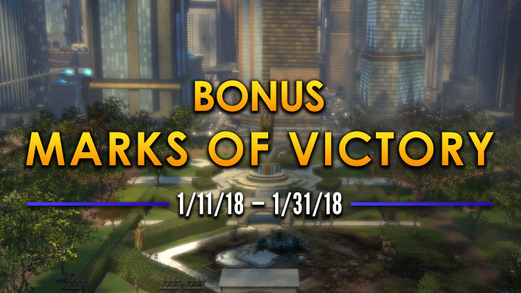 This MONTH – from Thursday, January 11, 2018, through Wednesday, January 31, 2018 – all players will receive bonus Marks of Victory in Episodic On Duty instances. Marks of Victory are used primarily for unlocking gear in all but the most recent Episodes.