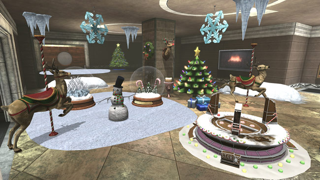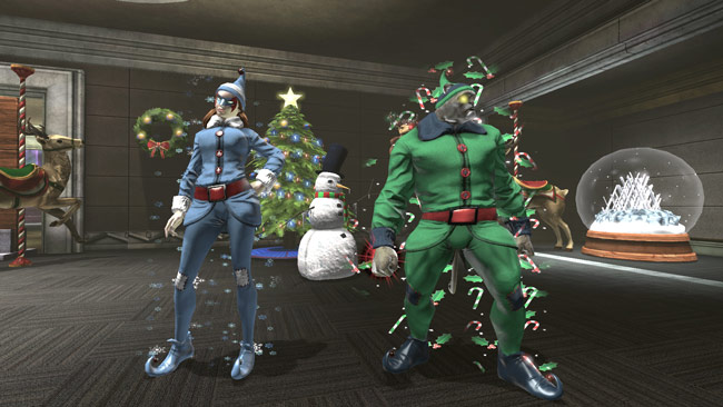 After you’ve made all things merry and bright, remember to get your holiday shopping done at Skeets’ Workshop! This is where you’ll find the latest winter clothing, holiday goodies, and festive base items. The workshop is accessible from your HQ and inside the Secret Research Facility. Also remember you can pick up some seasonal treats for yourself by running the winter-themed vault! And there are MANY new things you’ll want to get your hands on this year, from a mounted reindeer head to a Gingerbread S.T.A.R. labs base item!