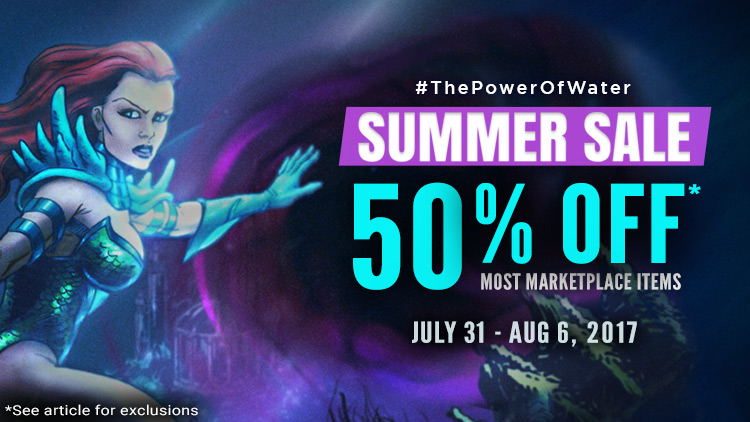 The summer sale is back! Most items are up to 50% off in the in-game Marketplace, including Replay Badges! The sale begins with daily server restarts on July 31, 2017, and ends on August 6, 2017, at 11:59 PM PT. Stock up on all the things! Excludes Respec Tokens and Stabilizers.