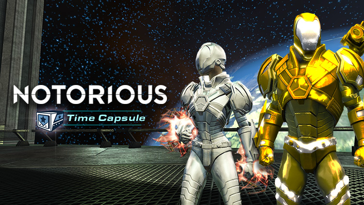 Universes collide in the new Notorious Time Capsule! Dropping in-game today, this and all Time Capsules can be unlocked with Stabilizers. Stabilizers are earned in-game or purchased in the Marketplace.