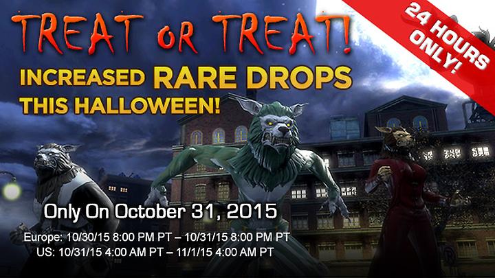 Everyone likes treats on Halloween, even Heroes and Villains busy saving the world. That's why this Halloween, we're cranking the Bad Luck Limiter down to TWO so those rare drop treats are appropriately plentiful for the holiday.