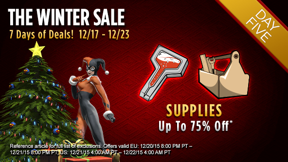 Vault Tickets? Check. Proto-Bots? Check. Teleporters? Check. These and more supplies* are discounted up to 75% off in today’s daily special for the Winter Sale! Head to the consumables category of the Marketplace to see what other deals you can find! And remember, these sales are for 24 hours only**, so if you see something you want at the discount, don’t miss your chance to grab it!